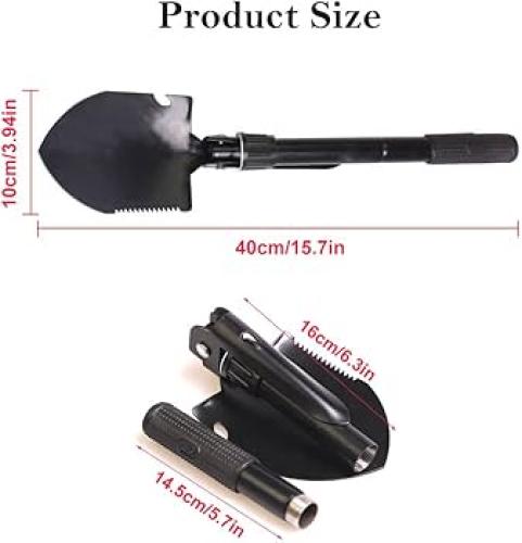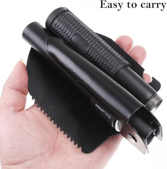 pelle multifonction 8-en-1 est un outil compact et robuste, idéal pour le camping, les randonnées, le jardinage et les situations d’urgence en voiture. Fabrication en acier et aluminium pour plus de solidité et une longue durée d’utilisation. Conception pliante avec poignée antidérapante, facile à démonter et à ranger dans sa pochette. Pratique pour creuser, couper, scier, orienter ou ouvrir des bouteilles. Outil essentiel pour l’extérieur et les voyages.