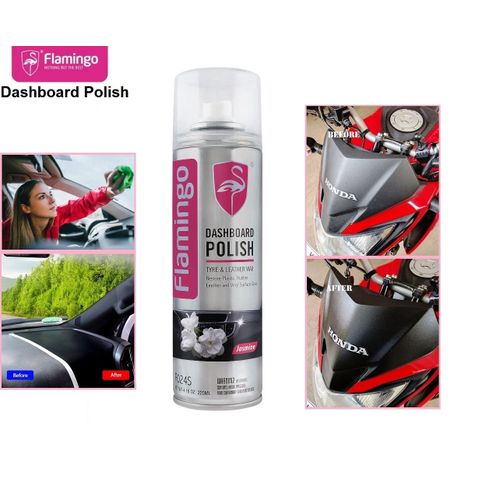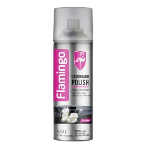 Le Flamingo Dashboard Polish parfum Jasmin est un spray de cire multi-surfaces conçu pour nettoyer, protéger et faire briller le tableau de bord, les pneus et les surfaces en cuir. Il redonne éclat et souplesse aux plastiques, caoutchoucs, vinyles et cuirs tout en laissant un parfum agréable.