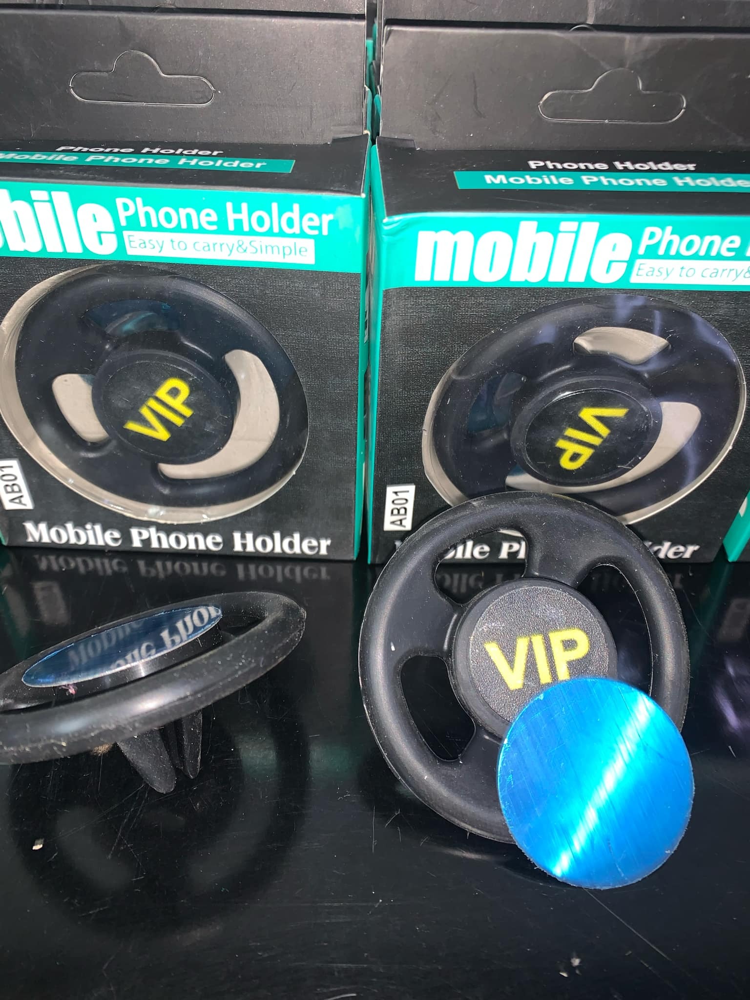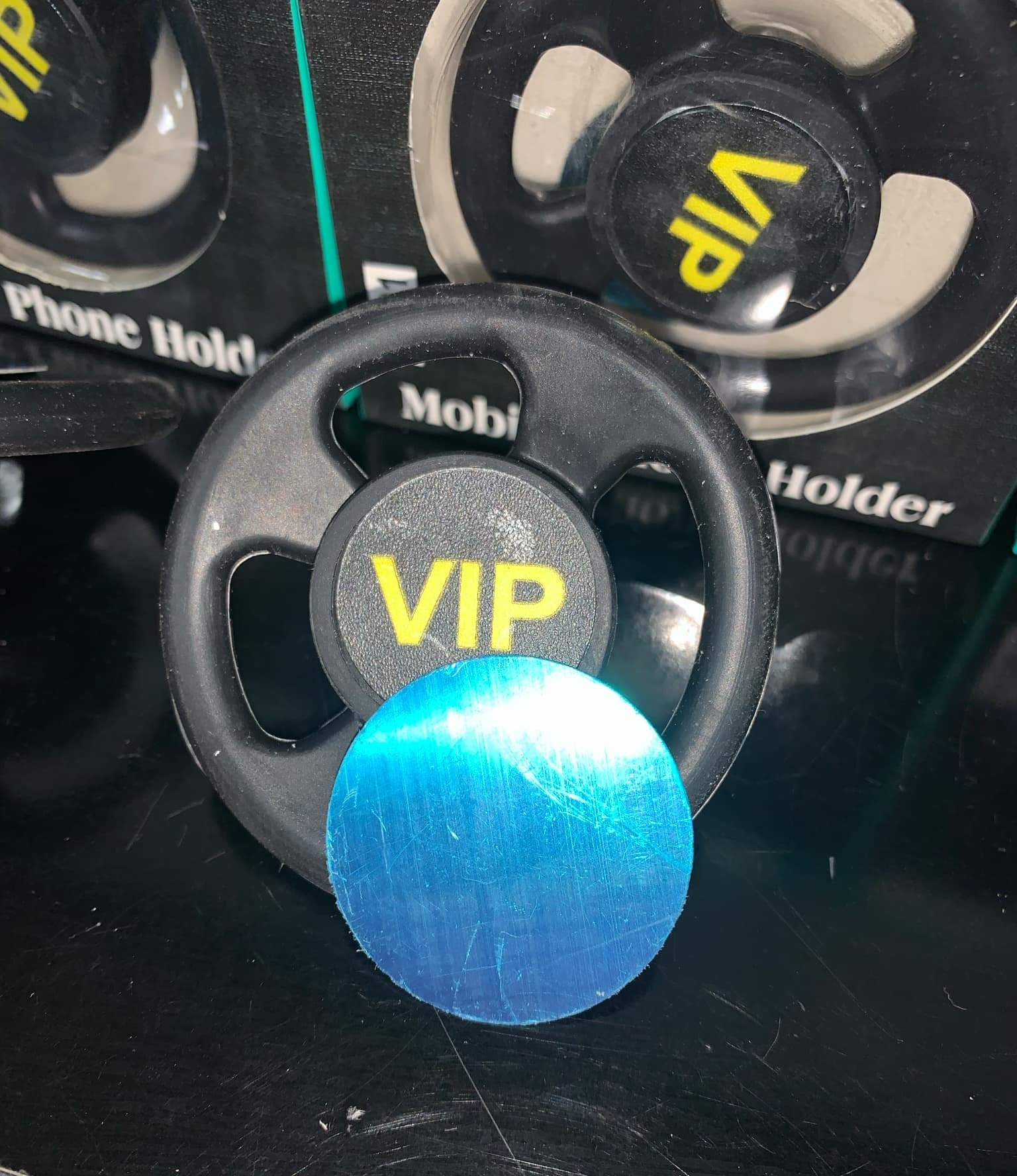 Livré avec une plaque métallique autocollante à coller au dos du téléphone ou de sa coque.